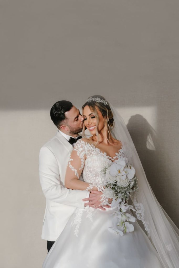 La estética fue impecable, elegante y serena. Flores blancas, rosas, hortensias y orquídeas, junto a delicados detalles que reflejaban su fe, dieron forma a un escenario lleno de armonía. La planificación y decoración estuvieron a cargo de Celebration VIP, bajo la dirección de Adeixy Ortega, quien también fungió como wedding planner.