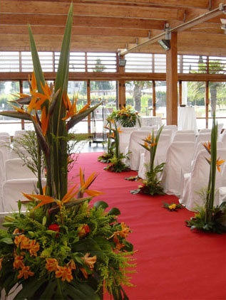 - Heliconias: Con sus estructuras esculturales y colores intensos, las heliconias aportan un toque de dramatismo y exotismo. Son perfectas para centros de mesa altos o para decorar arcos y entradas.