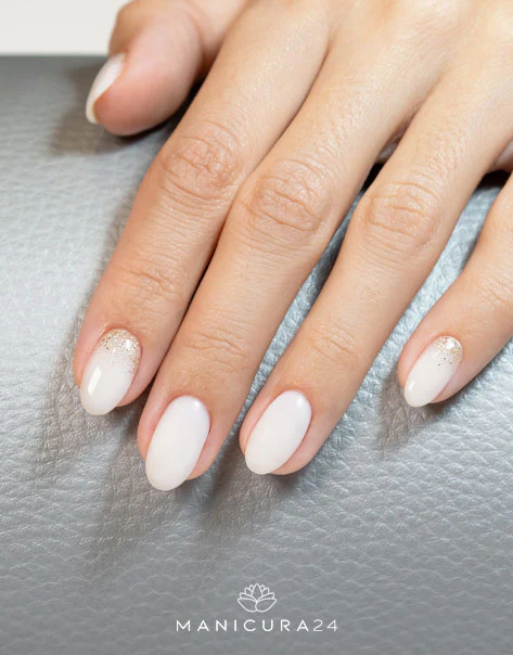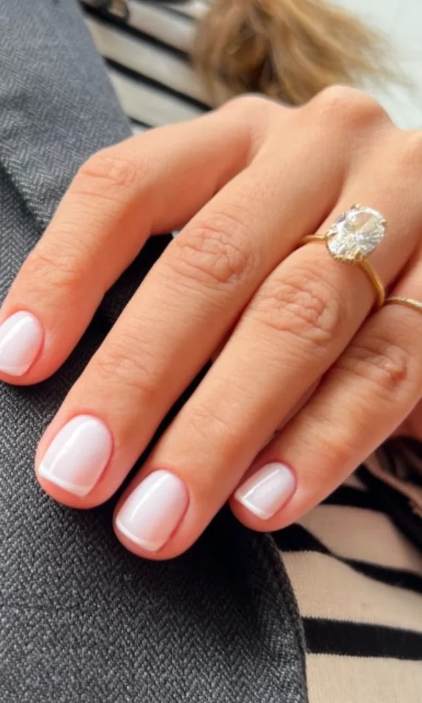 Esta versión más sutil de la manicura francesa destaca por su línea blanca difusa, ofreciendo un acabado natural y sofisticado. Es ideal para novias que buscan un estilo minimalista y elegante.