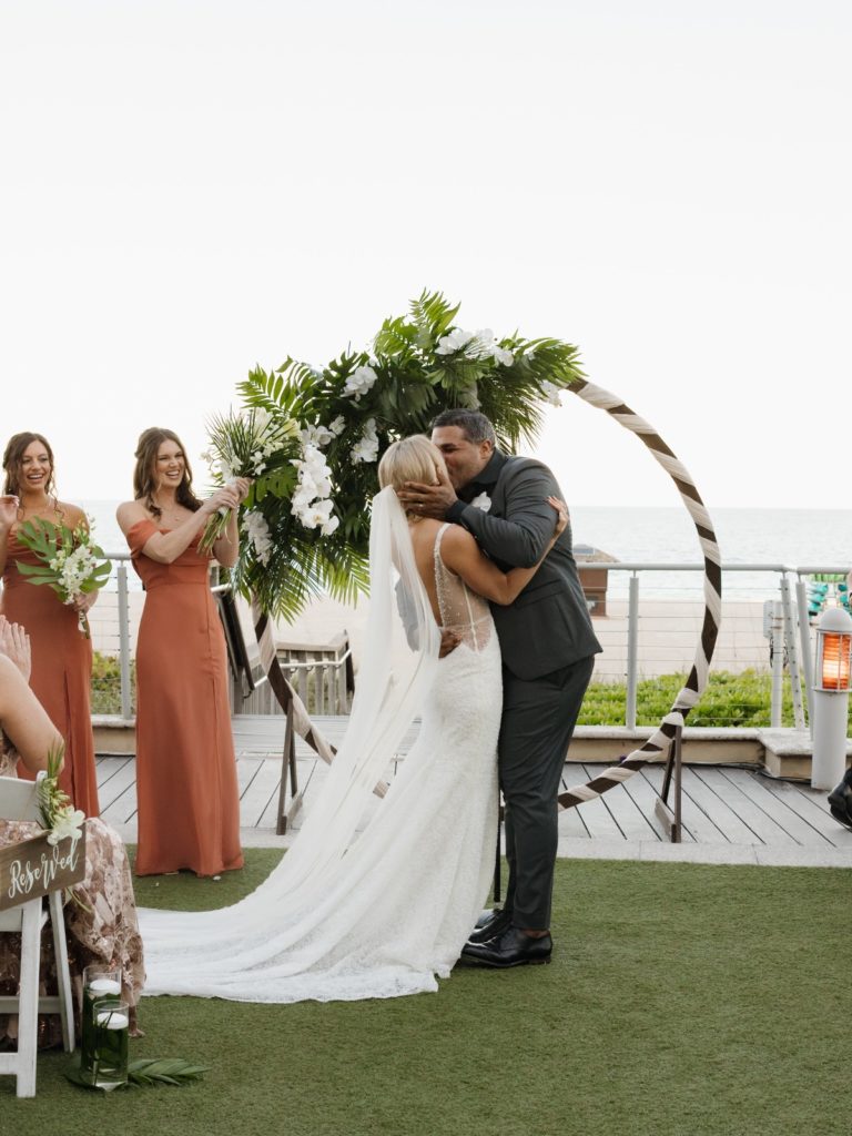 La ceremonia se celebró en el Marriott Harbor Beach Resort, frente a las aguas del Atlántico en Fort Lauderdale Beach. Con la suave brisa marina acariciando el ambiente, más de 150 seres queridos se reunieron para ser testigos de este momento trascendental: un compromiso eterno grabado como un romance en las doradas arenas del tiempo.
